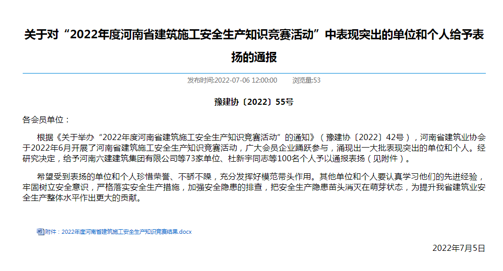 【查看詳情】安全生產(chǎn)是一個企業(yè)的生命線,也是一個永恒的話題。多年來,河南五建第二建筑安裝有限公司始終堅持安全第一、預(yù)防為主、綜合治理的安全方